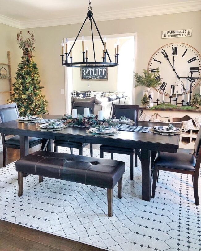 Farmhouse Christmas decor is an enchanting blend of rustic charm and seasonal warmth. Rich red accents mingle with classic black-and-white patterns, creating visually appealing contrast that draws the eye.
